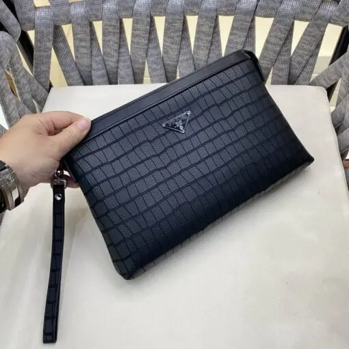 Prada Saffiano Leather Pouch Wallet Crocodile Black
