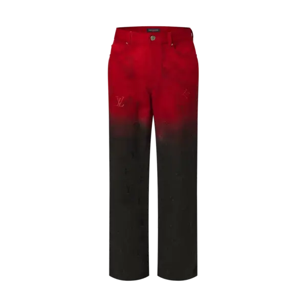 LV Embroidered Denim Pants Red