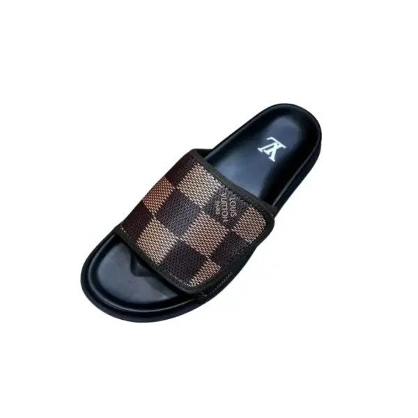 LV Slipper 6AM Flat Mule Black With Other Canvas Brown