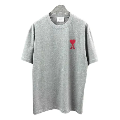 Ami Paris T Shirt Stylized Heart Red Logo Grey