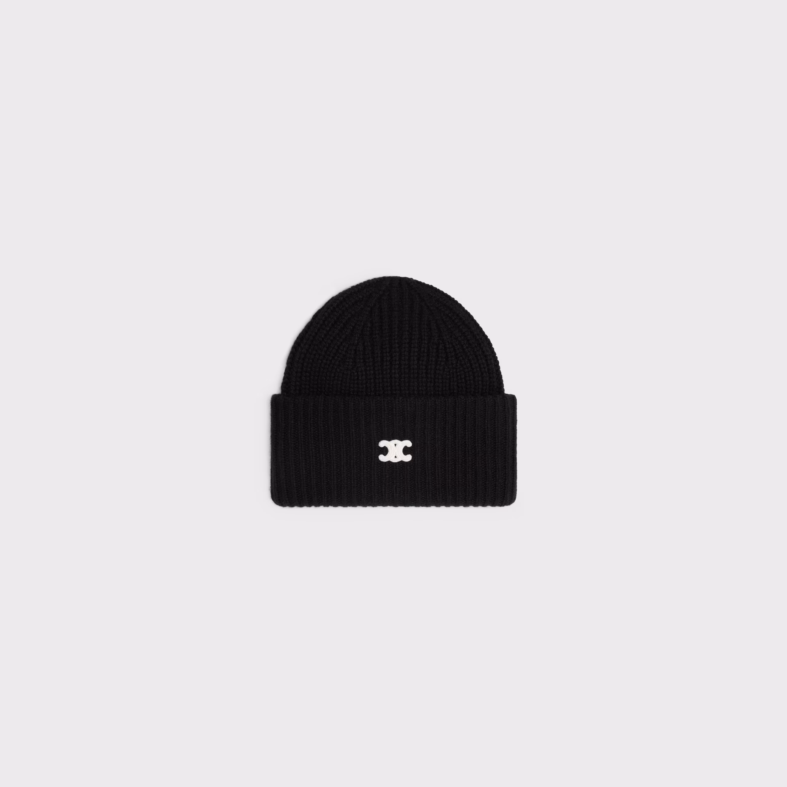 Celine Triomphe Beanie Seamless Cashmere Hat Black