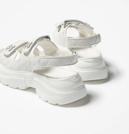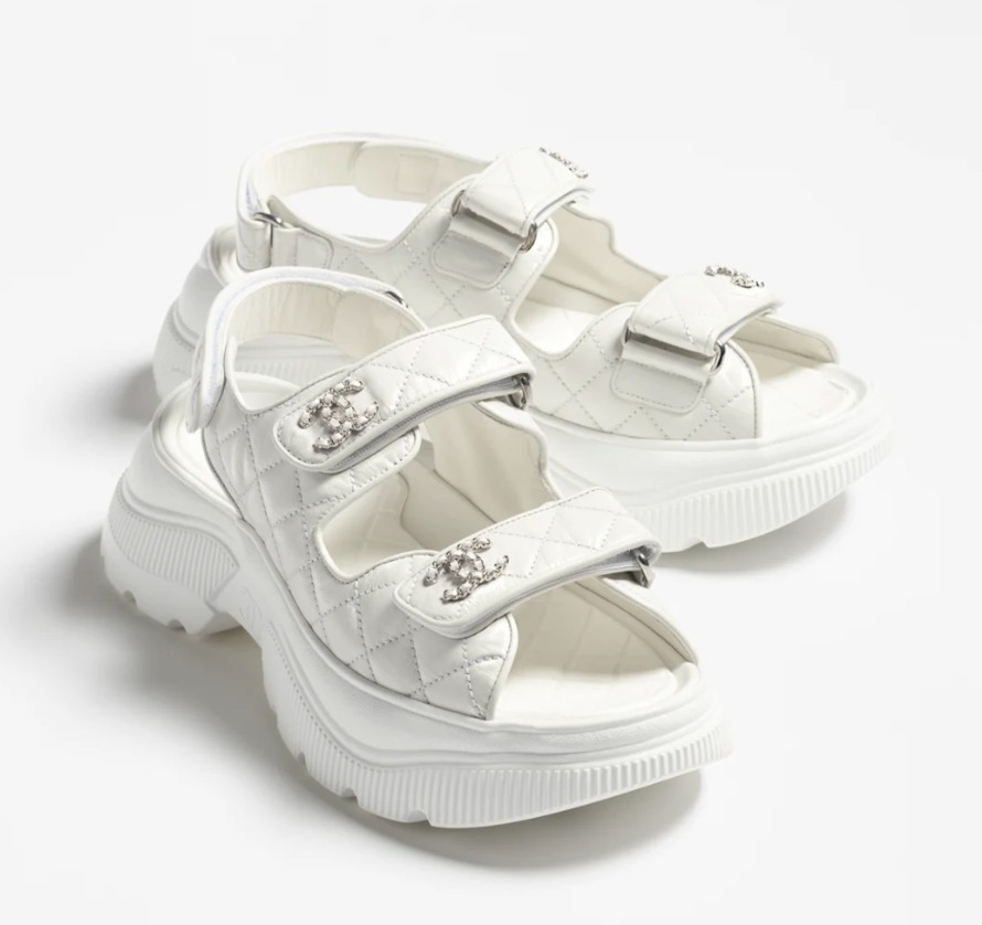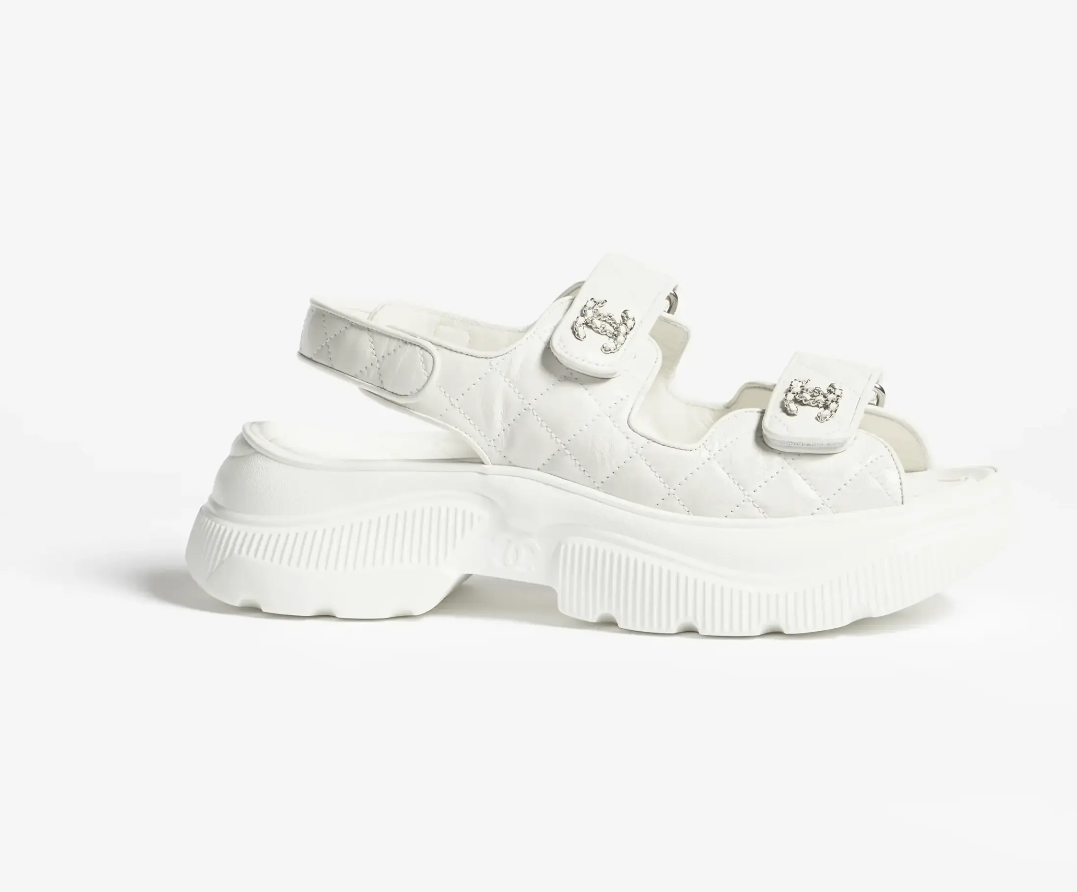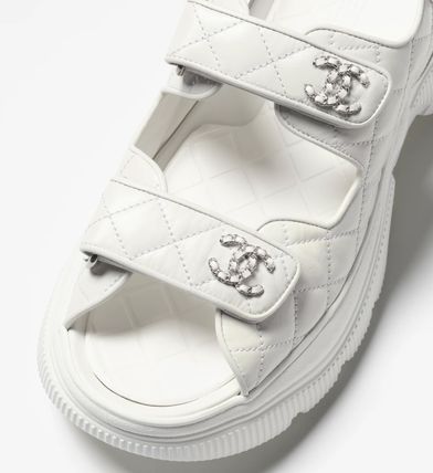 Chanel Shiny Calfskin Chain Sandals White