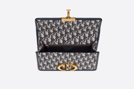 The 30 Montaigne line, inspired by the historic, emblematic address, presents essential pieces that portray the iconic codes of the House. The handbag is crafted in blue Dior Oblique jacquard for an elegant and modern look. The flap is embellished with an antique gold-finish metal ‘CD’ clasp, inspired by the seal of a Christian Dior perfume bottle. Refined details such as an embossed ’30 MONTAIGNE ‘signature on the back, define this unique design. Featuring an adjustable leather shoulder strap, the bag may be carried by hand, worn over the shoulder or crossbody.