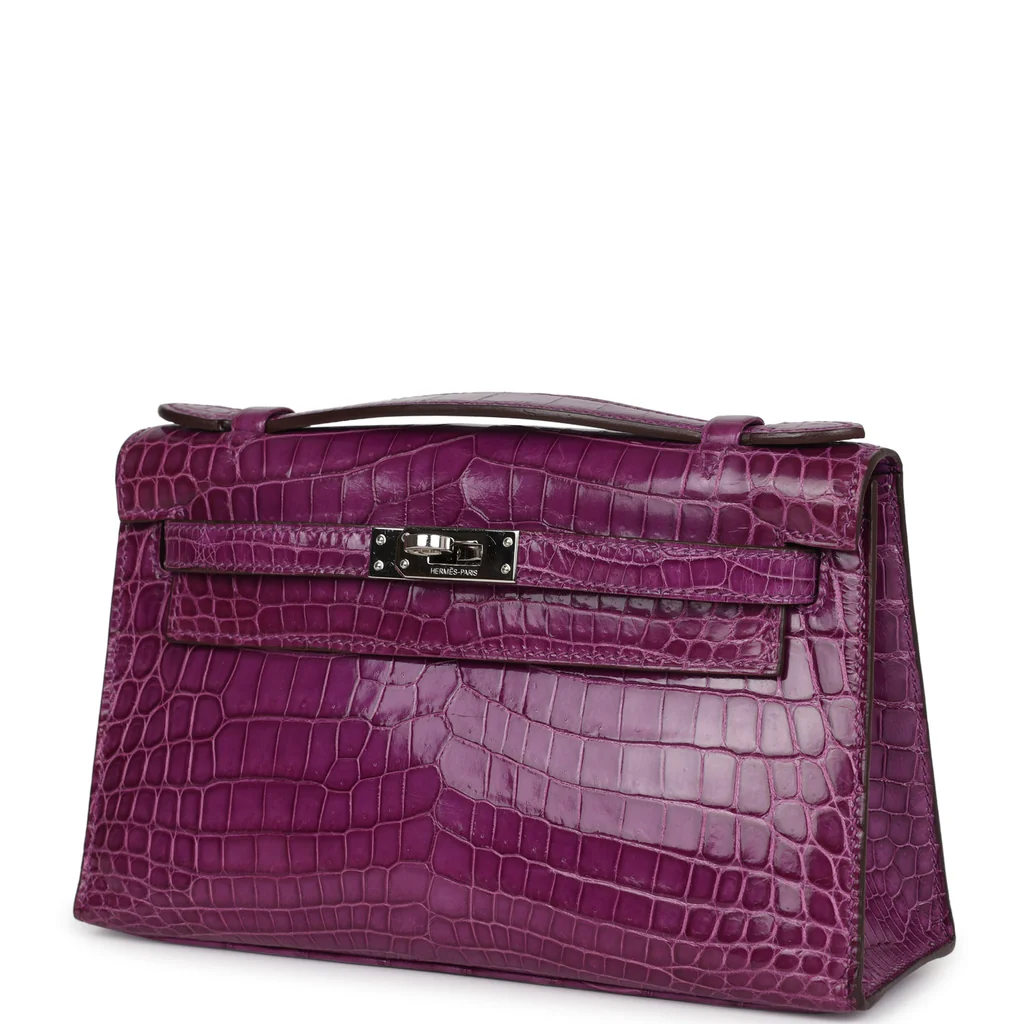 Hermès Mini Kelly 20 Sellier Handbag Crocodile Purple
