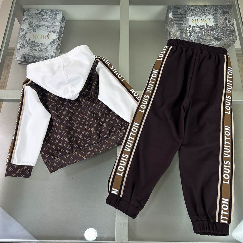 LV Kids’ Monogram Pattern Tracksuit Brown White