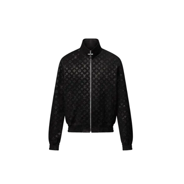 LV Monogram Debossed Leather Tracksuit Jacket Noir