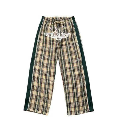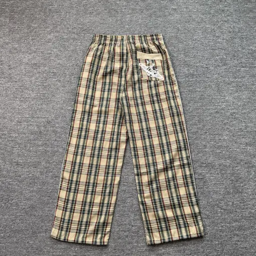 Syna World Plaid Straight Leg Trousers Green Side Stripe
