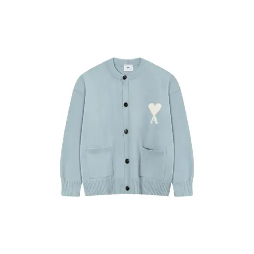 Ami Paris ADC Merino Heart Shaped Alpaca Blend Soft Cozy Knit Cardigan Round Neck Sweater Light Pink