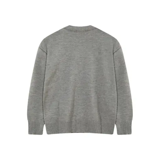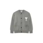 Ami Paris ADC Merino Heart Shaped Alpaca Blend Soft Cozy Knit Cardigan Round Neck Sweater Dark Gray