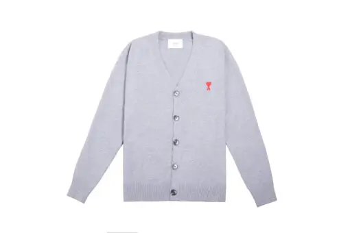Ami Paris De Coeur Extrafine Merino Wool Cardigan Blue