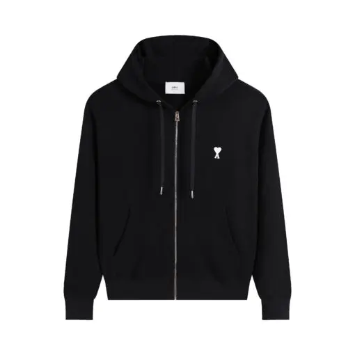 Ami Paris Ami De Coeur Zip-Up Hoodie Navy Blue