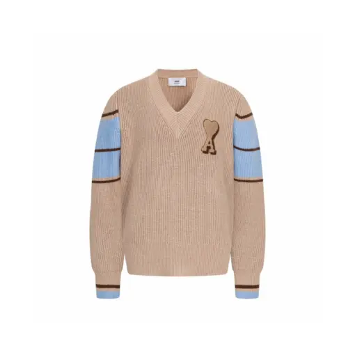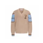 Ami Paris Brown Wool College Cardigan Light Olive Green