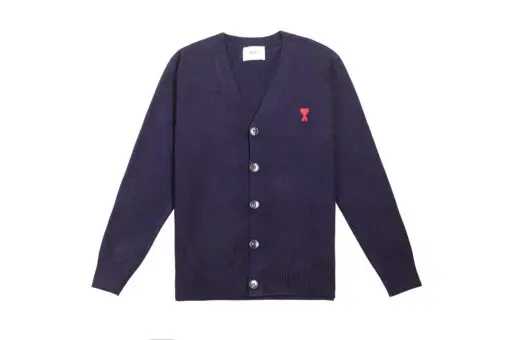 Ami Paris Ami De Coeur Extrafine Merino Wool Cardigan Grey