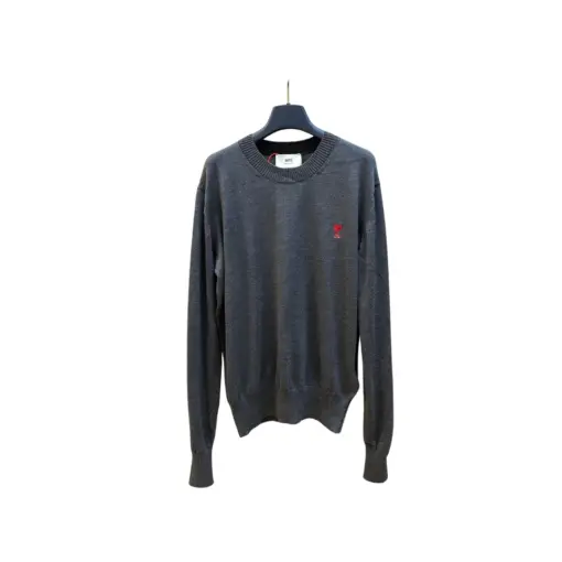 Ami Paris De Coeur Logo Embroidered Merino Wool Crew Neck Sweater Black