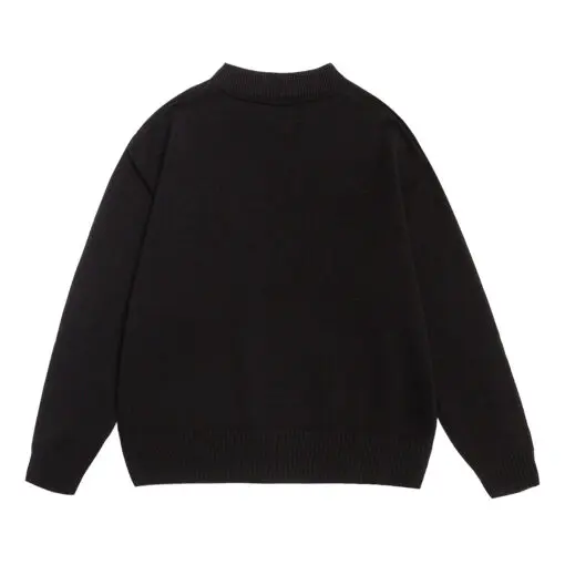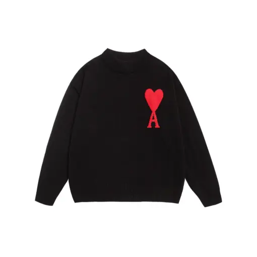 Ami Paris De Coeur Logo Embroidered Merino Wool Crew Neck Sweater Black