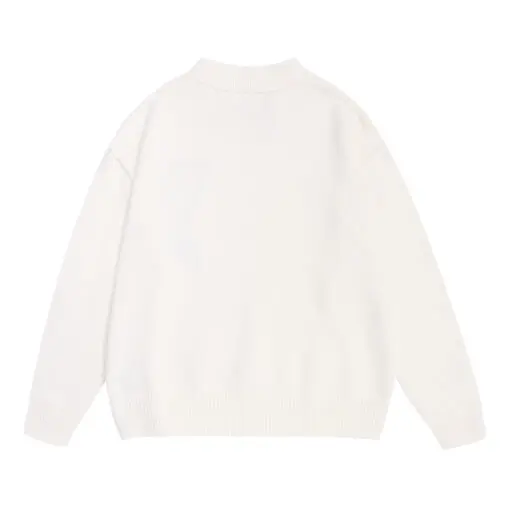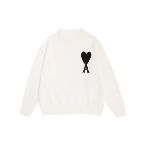 Ami Paris De Coeur Wool Crewneck Sweater Beige With White Intarsia Heart Logo
