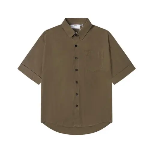 Ami Paris Embroidery Outline Loose Short-Sleeved Commuter Versatile Shirt Black