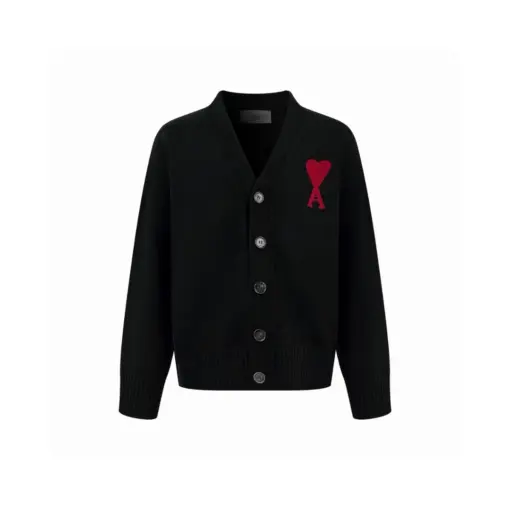 Be the first to review “Ami Paris Heart Shaped Cardigan Wool Sweater Black”