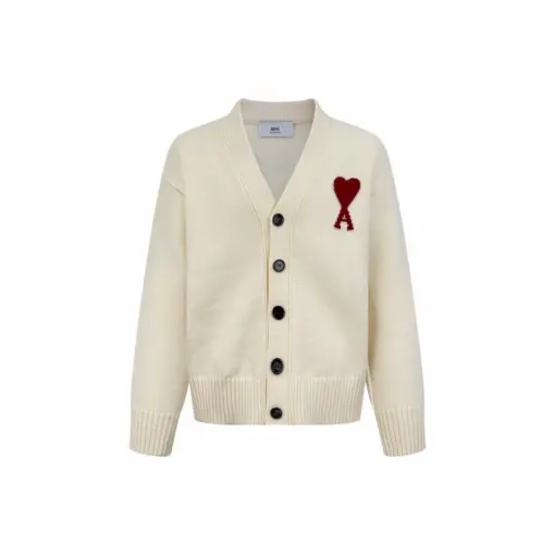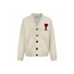 Ami Paris Heart Shaped Cardigan Wool Sweater Gray