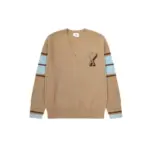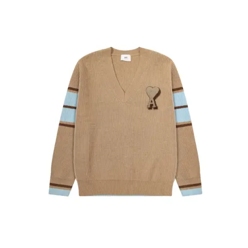 Ami Paris Heart Shaped Towel Embroidery Jacquard ADC Wool V Neck Sweater Brownish Green