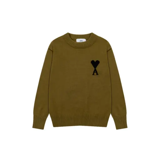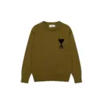 Ami Paris Jacquard ADC Merino Crew Neck Pullover Sweater Khaki