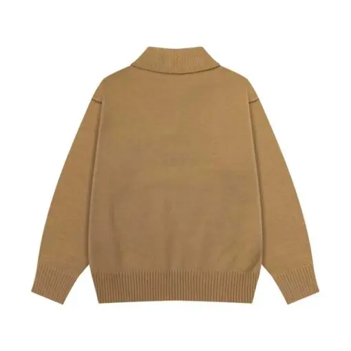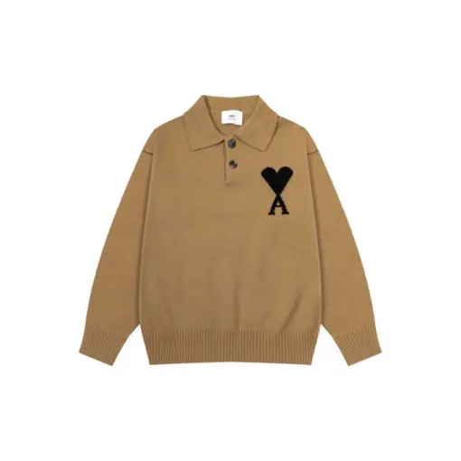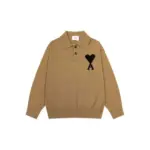 Ami Paris Jacquard ADC Merino Polo Collar Pullover Sweater Olive Green