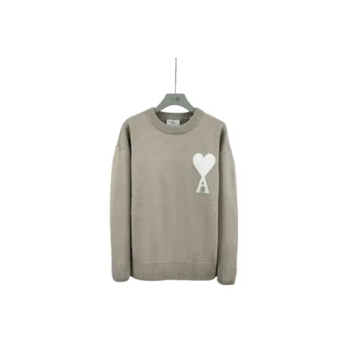 Ami Paris Large Heart Logo Blended Crew Neck Knit Sweater White