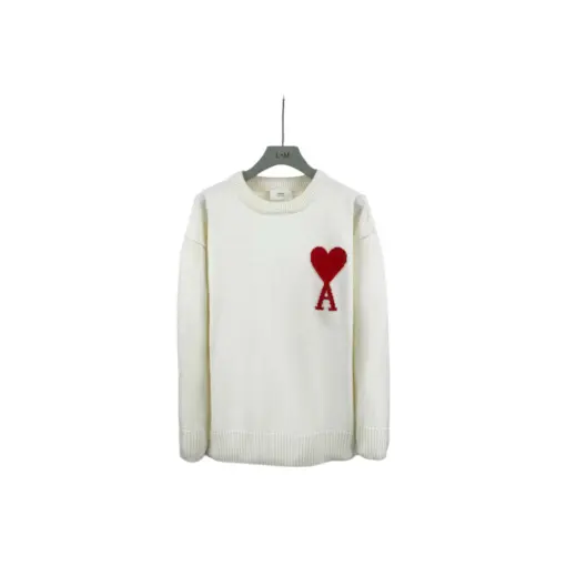 Be the first to review “Ami Paris Large Heart Logo Blended Crew Neck Knit Sweater White With Red Heart”