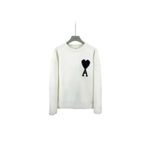 Ami Paris Large Heart Logo Blended Crew Neck Knit Sweater Gray