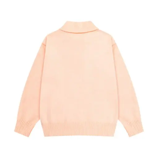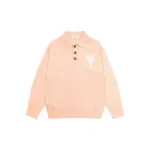 Ami Paris White Heart Jacquard Alpaca Blend Loose Polo Neck Pullover Sweater Light Yellow