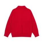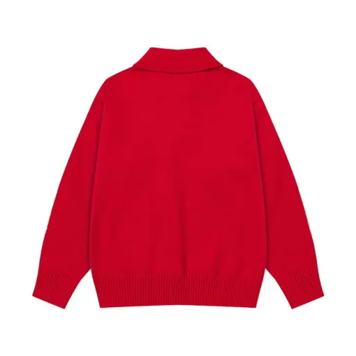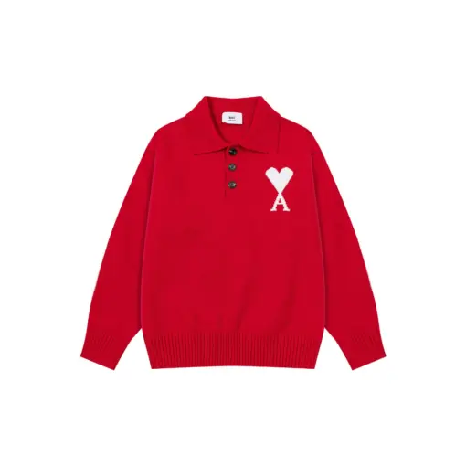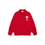 Ami Paris White Heart Jacquard Alpaca Blend Loose Polo Neck Pullover Sweater Khaki