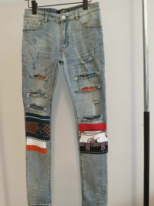 AMIRI Men's MX1 Bandana Ripped Patch Skinny Jeans Black