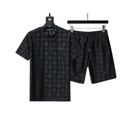Amiri Polo Crew Neck Short Sleeve Terry Jacquard Shorts Set White Shirt