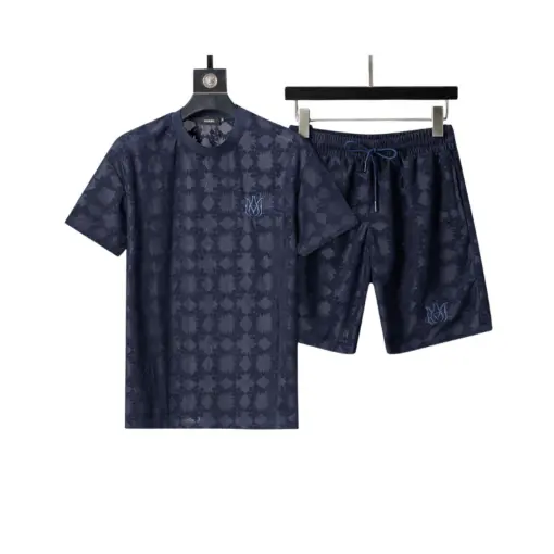 Amiri Crew Neck Short Sleeve Terry Jacquard Shorts Set White