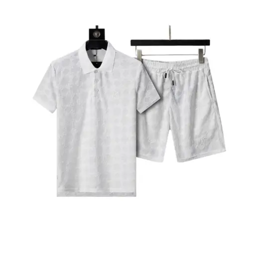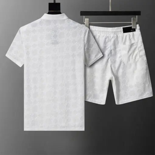 Amiri Polo Crew Neck Short Sleeve Terry Jacquard Shorts Set Black Shirt