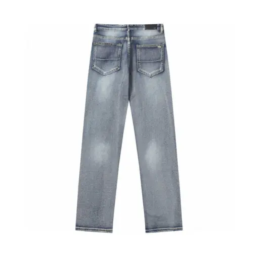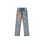 Be the first to review “Amiri Straight Leg Logo Appliquéd Embroidered Distressed Jeans Light Blue With Orange Monogram”
