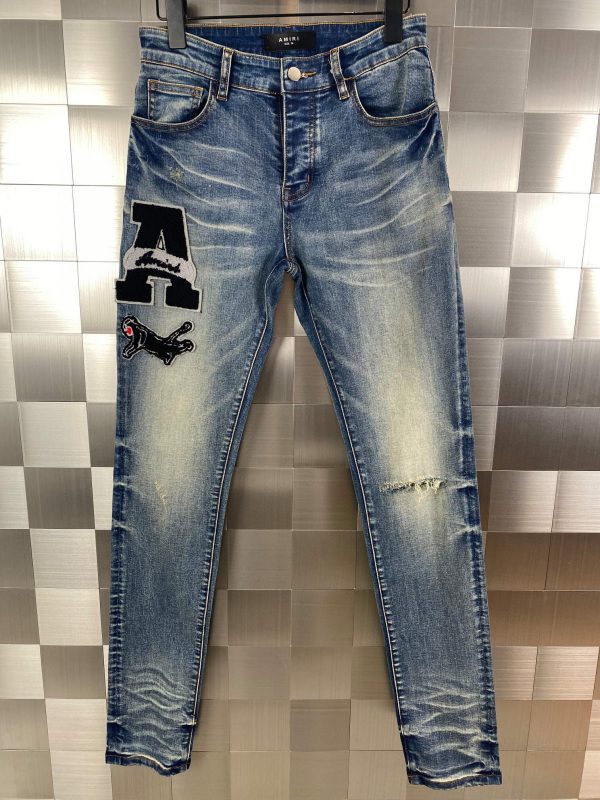 Amiri Varsity Applique Logo Skinny Jeans Antique Indigo Wash