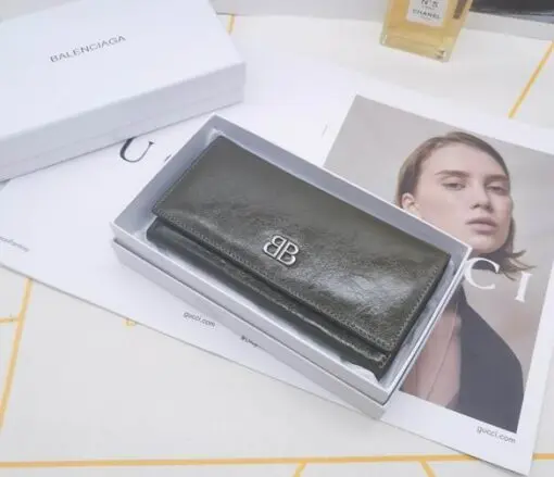 Be the first to review “Balenciaga BB-logo Leather Wallet Olive Green”