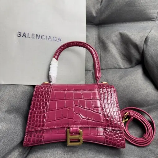 Balenciaga Hourglass Bag Maroon Crocodile