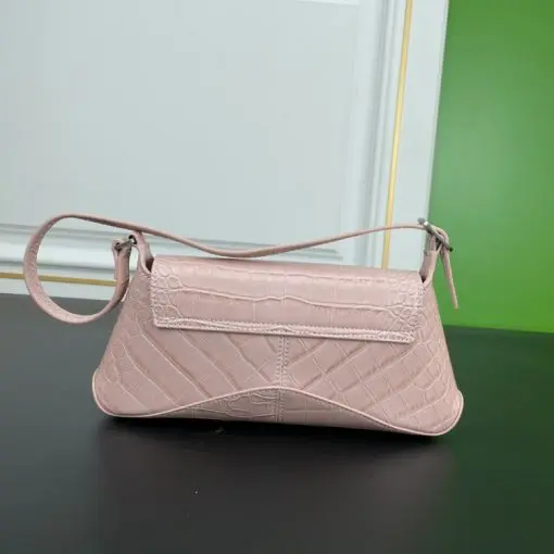 Balenciaga XX Flap Crocodile Embossed Leather Shoulder Bag Pink