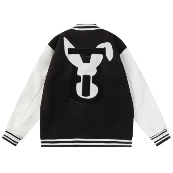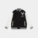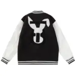 Burberry Leather Sleeve Technical Wool Varsity Jacket Grey/White