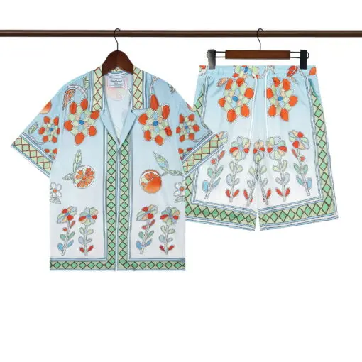 Casablanca Blue Yoruba Flowers Silk Shirt And Short Set