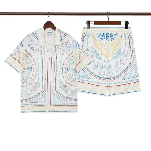 Casablanca Crayon Vase Cuban-Collar Silk Shirt And Shorts Set