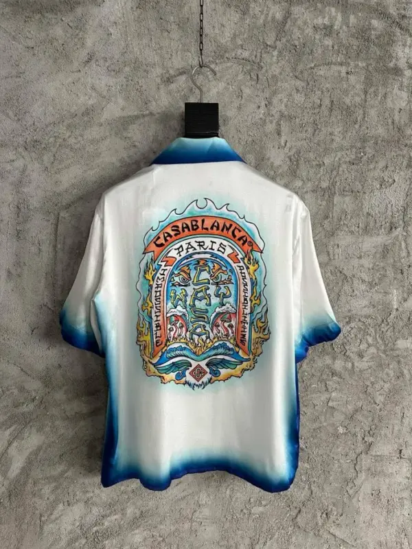 Casablanca Cuban Collar Graphic Print Long Sleeve Shirt