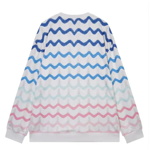 Casablanca Gradient Wave Crochet White Cotton Multi Color Pattern Sweatshirt