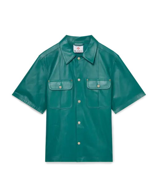 Satin Quarter Zip Short Sleeve Shirt Blue