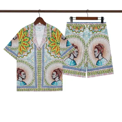 Casablanca Multi Mosaics Grecques Silk Twill Shirt And Short Set