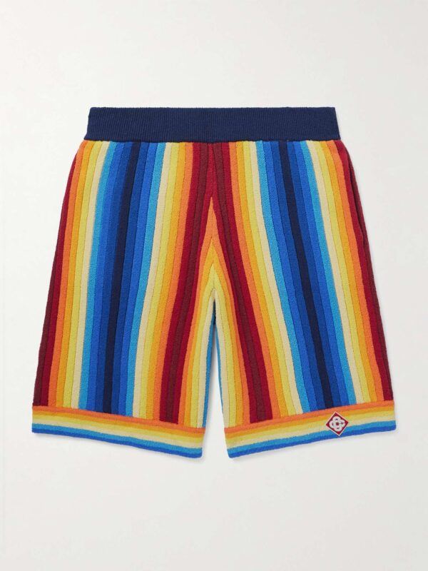 Casablanca Straight-Leg Logo-Appliquéd Striped Cotton-Blend Terry Shorts
