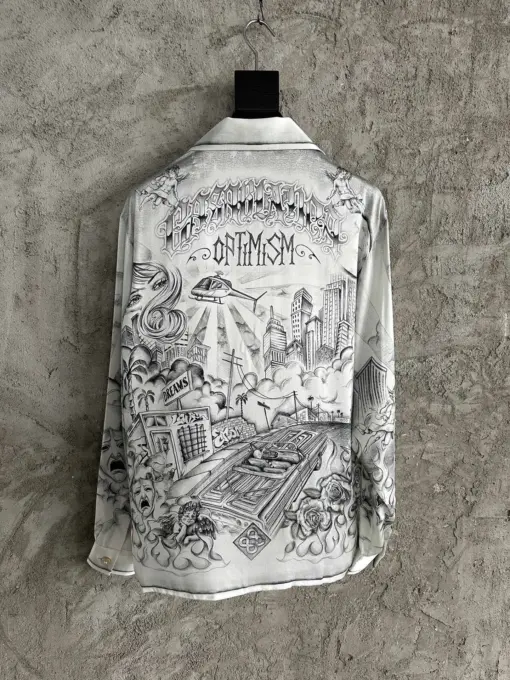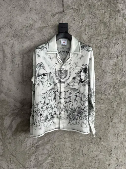 Casablanca Tattoo Long Sleeve Silk Shirt White