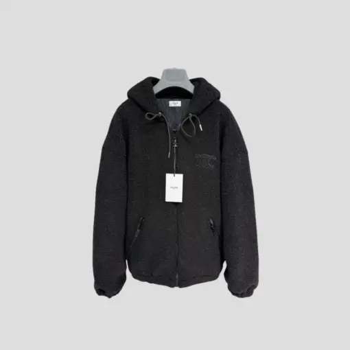 Celine Homme Logo-Embroidered Fleece Hooded Jacket